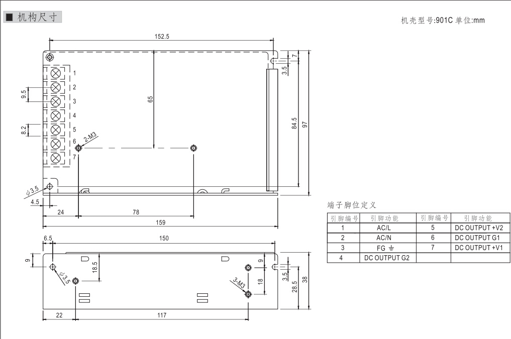 封装尺寸 159x97x38mm 认证 RoHS,CE