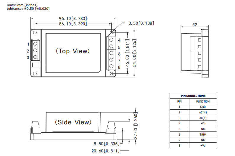 | 输入电压 | 85-264VAC | 温度范围 | -40˚cto+85˚c |