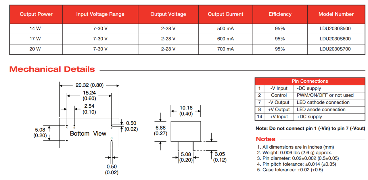 查看制造商XP Power的系列LDU20更多型号电源