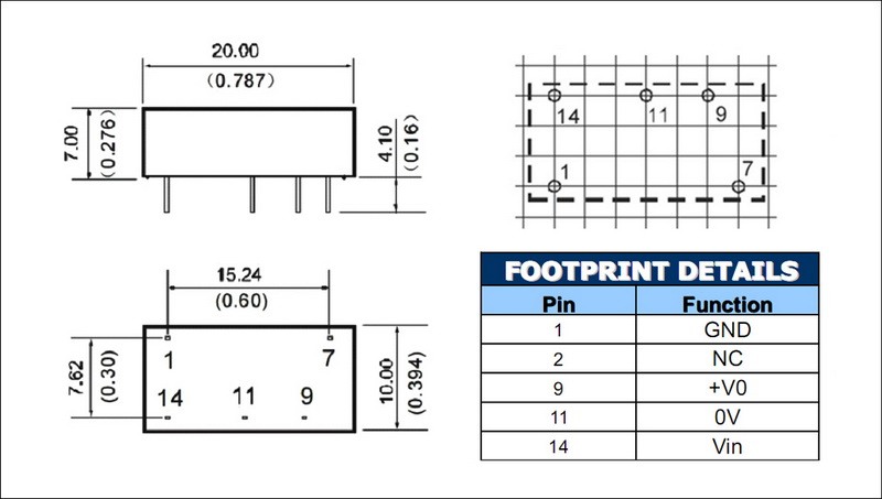 | 输出功率 | 1W | 短路保护 | 1second(-suffix"P" continous) |
