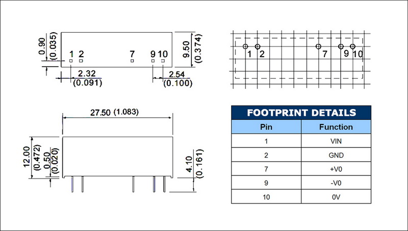 | 输出功率 | 1W | 短路保护 | 1second(-suffix"P" continous) |