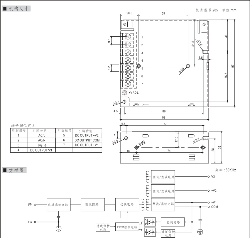 | 输出电压 | 5/24/12VDC | 效率 | 79 % |