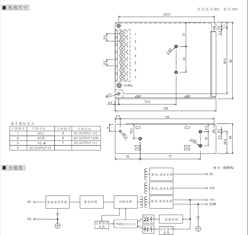 | 输出电压 | 5/15/-15VDC | 效率 | 78 % |