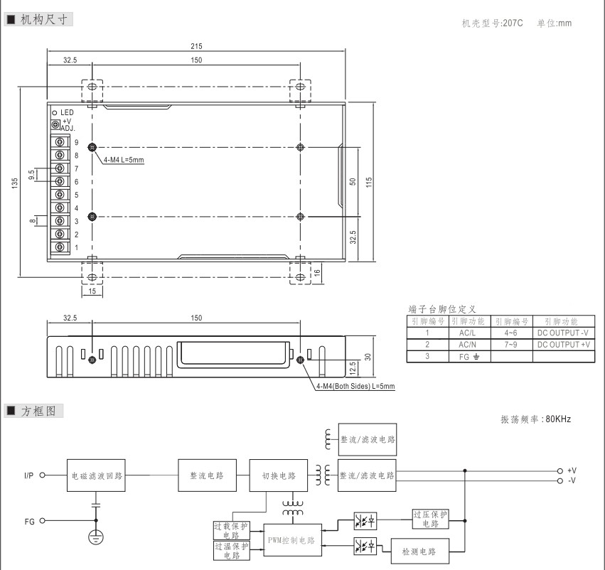 | 输入电压 | 180-264VAC | 温度范围 | -40˚cto+85˚c |