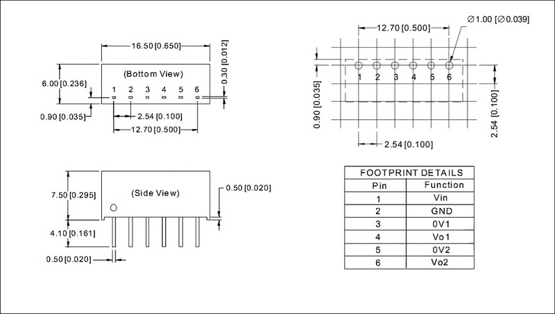 | 输出功率 | 1W | 短路保护 | 1second(-suffix"P" continous) |