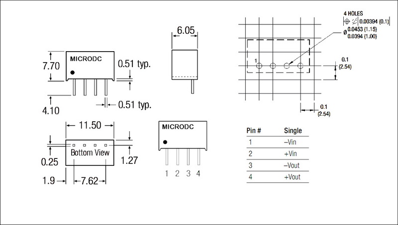 | 输出功率 | 1W | 短路保护 | 1second(-suffix"P" continous) |