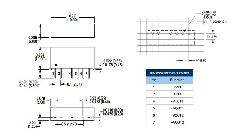 | 输出功率 | 1W | 短路保护 | 1second(-suffix"P" continous) |
