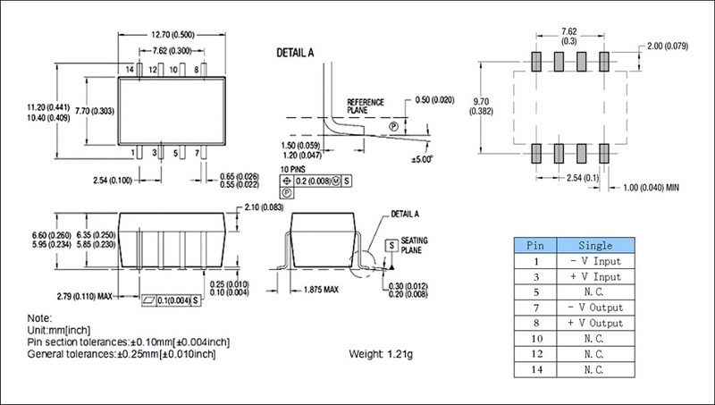 | 输出功率 | 0.25W | 短路保护 | 1second(-suffix"P" continous) |