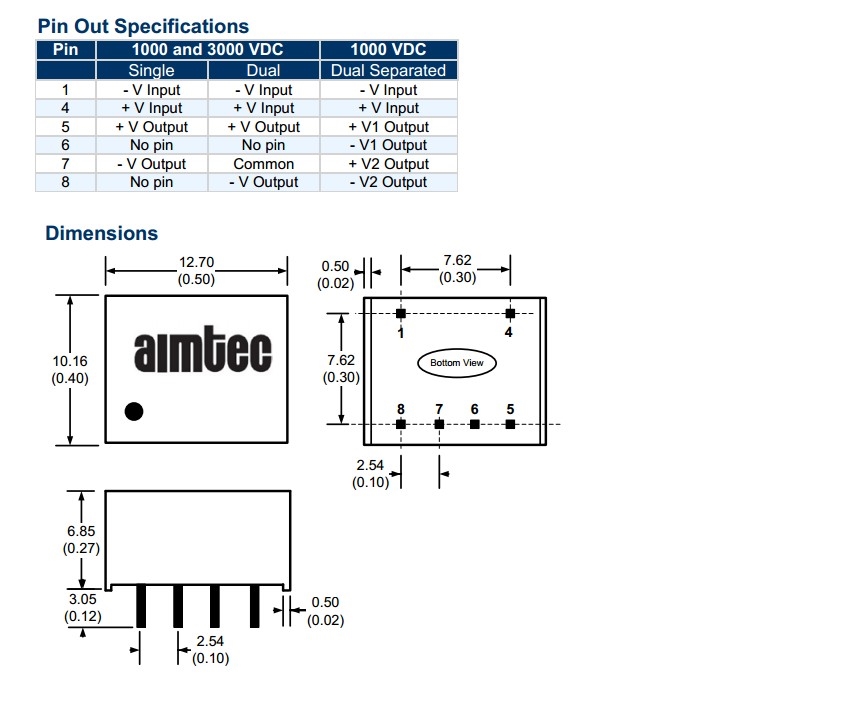 查看制造商AIMTEC的系列AM1P-Z更多型号电源