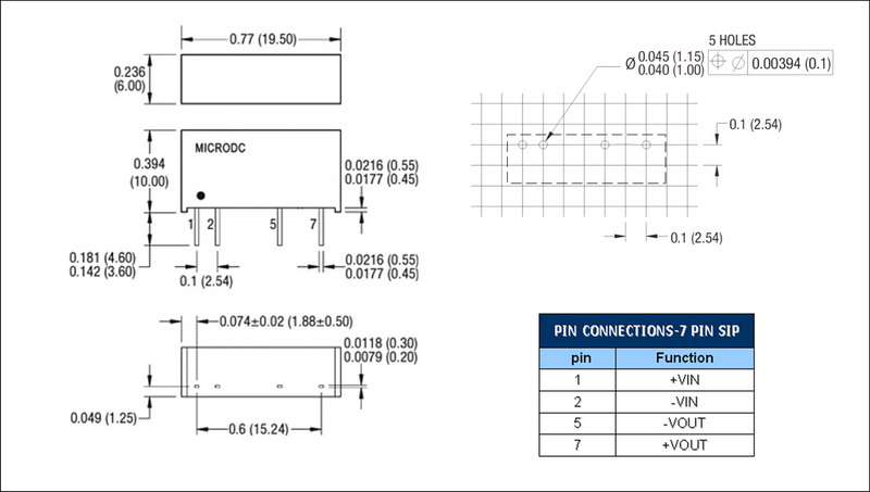 | 输出功率 | 1W | 短路保护 | 1second(-suffix"P" continous) |