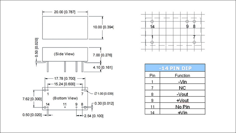 | 输出功率 | 1W | 短路保护 | 1second(-suffix"P" continous) |