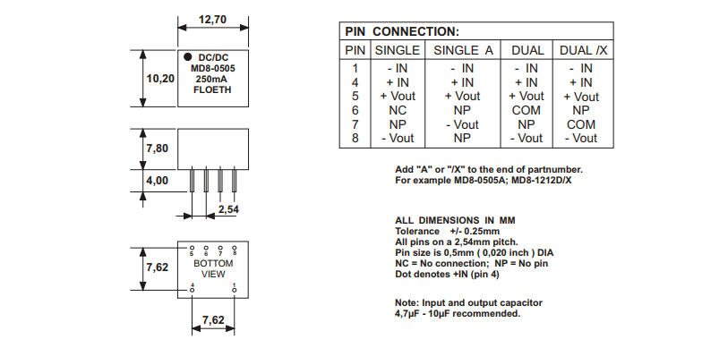 | 型号 | MD8-0509A | 稳压输出 | UNREGULATED |