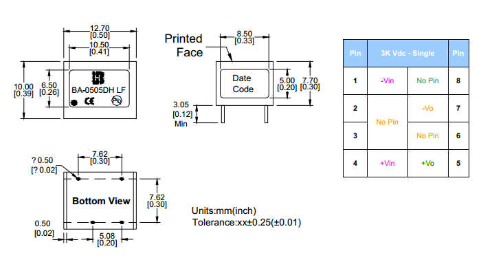| 型号 | BA-0512D1H LF | 稳压输出 | UNREGULATED |