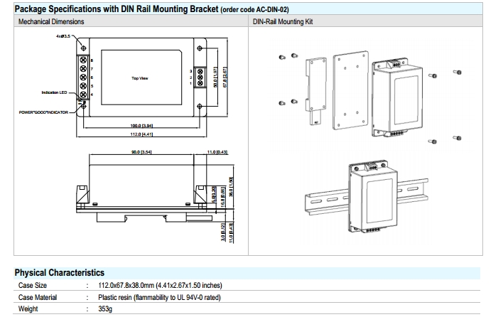 | 封装尺寸 | 112.0x67.8x38.0mm | 认证 | RoHS,CE |