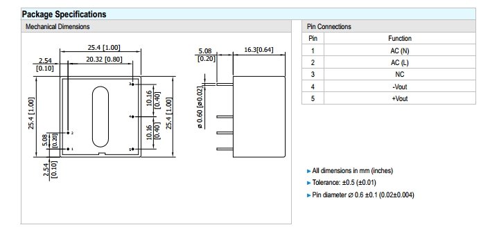 | 封装尺寸 | 25.4x25.4x16.3mm | 认证 | RoHS,CE |