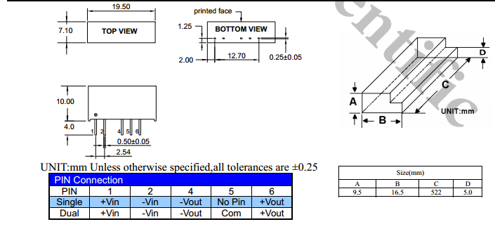| 输出功率 | 2W | 短路保护 | CONTINUOUS |