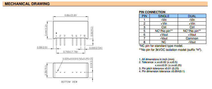 | 输出功率 | 3W | 短路保护 | continous |