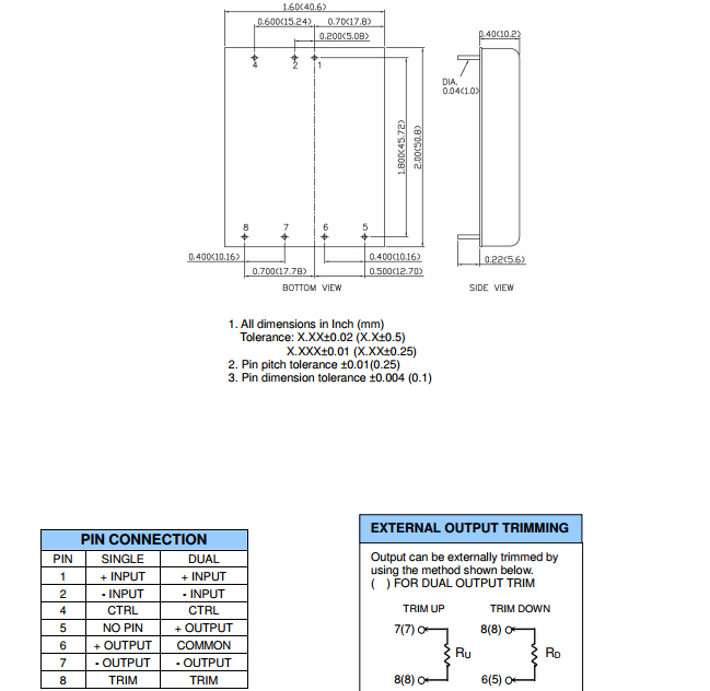 | 隔离电压 | 1600 VDC | 外壳材料 | Plastics or metal |