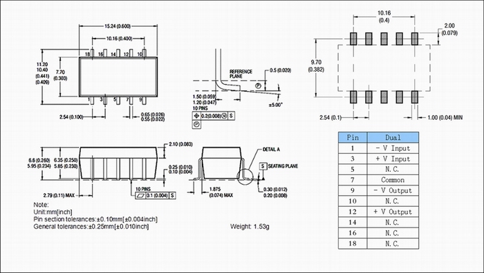 | 输出功率 | 0.25W | 短路保护 | 1second(-suffix"P" continous) |