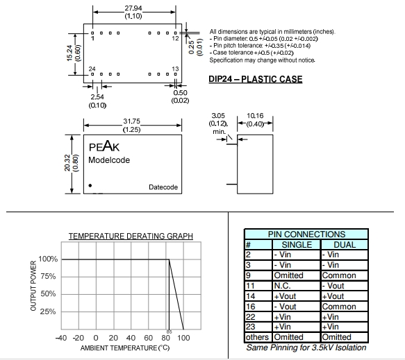 查看制造商PEAK的系列P22TG-xxxxE/Z2:1(H35)LF 更多型号电源