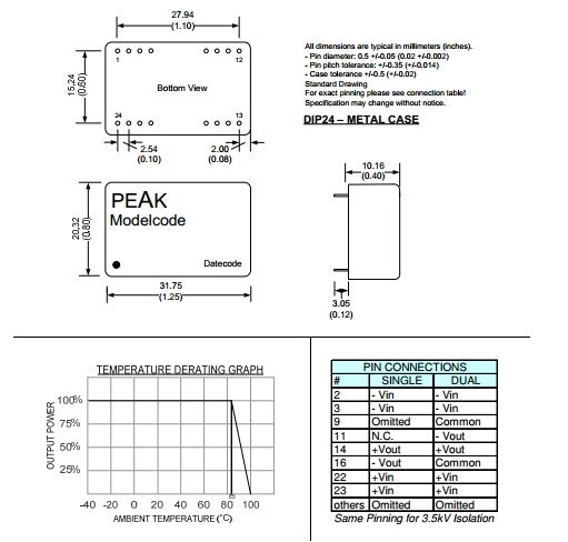 查看制造商PEAK的系列P26TG-xxxxE/Z2:1(H35)MLF 更多型号电源