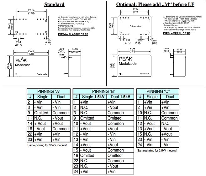查看制造商PEAK的系列PECO5-x-xxxxE/Z4:1(H35)(M)LF更多型号电源