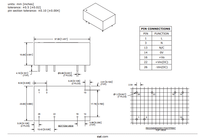 | 封装尺寸 | 37.0x23.0x15.0mm | 认证 | RoHS,CE |