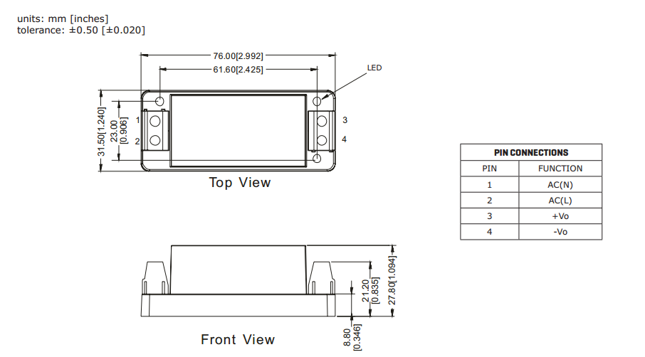 | 封装尺寸 | 76x31.5x27.8mm | 认证 | RoHS,CE |
