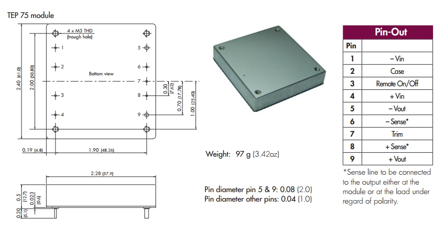 | 所属系列 | TEP75-WI | 产品类别 | 直流到直流电源(DC/DC) |