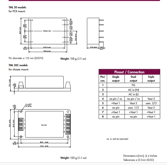| 所属系列 | TML20 | 产品类别 | 交流到直流电源(AC/DC) |