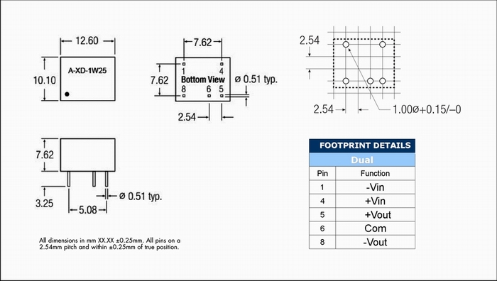 | 所属系列 | A-XD-1W25 | 产品类别 | 直流到直流电源(DC/DC) |