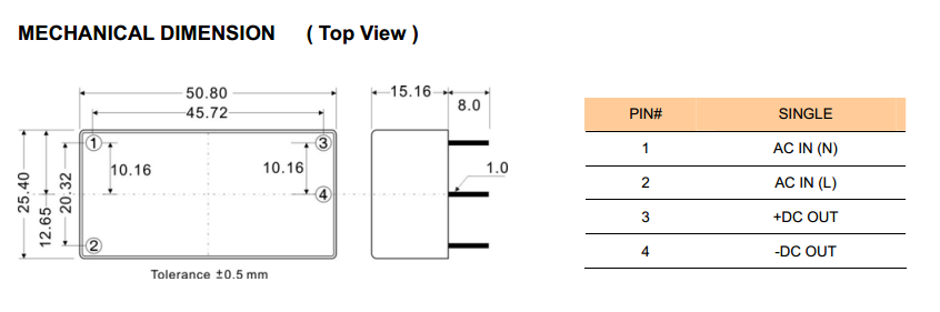 | 封装尺寸 | 50.8x25.4x15.16mm | 认证 | RoHS,CE |