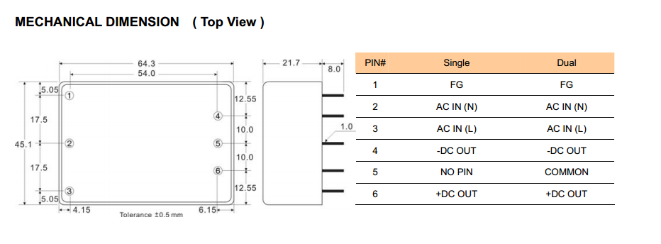 | 封装尺寸 | 64.0x45.0x21.5mm | 认证 | RoHS,CE |