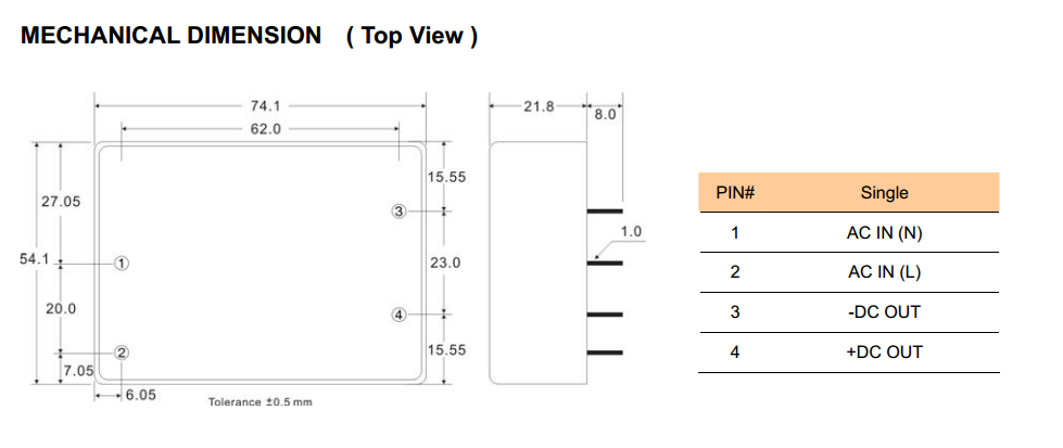 | 封装尺寸 | 74.0x54.0x22.0mm | 认证 | RoHS,CE |
