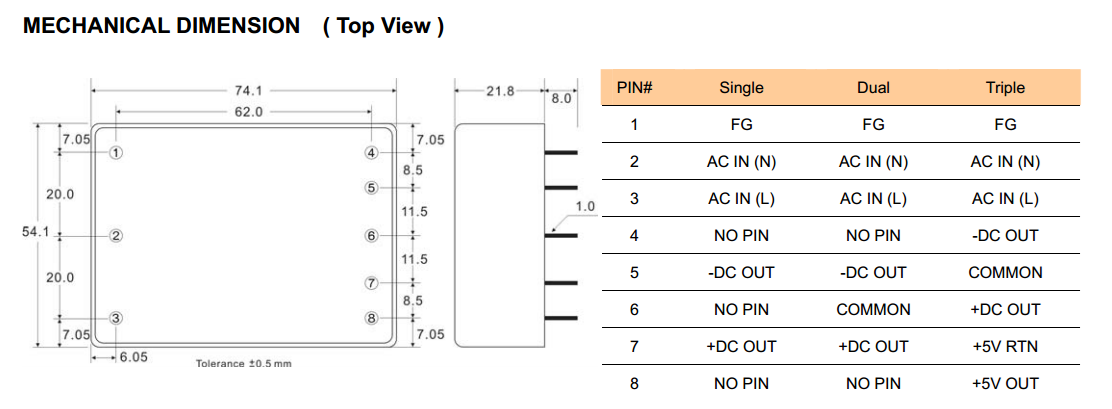 | 输出电压 | 5VDC | 效率 | 74 % |