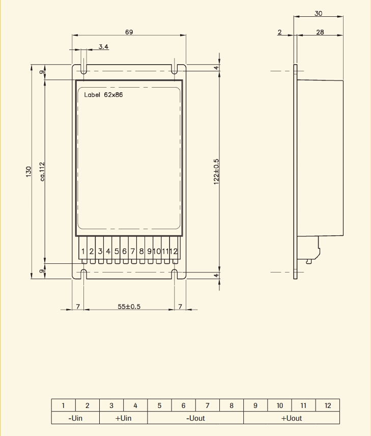 | 输出电压 | 12VDC | 效率 | 82 % |