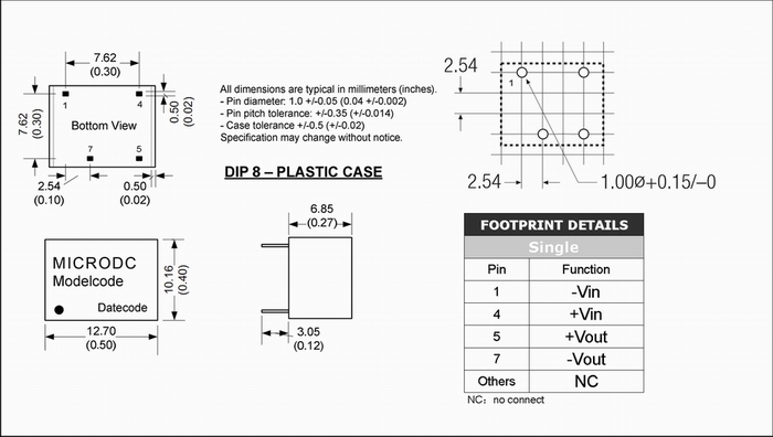 | 输出功率 | 1.5W | 短路保护 | 1second(-suffix"P" continous) |