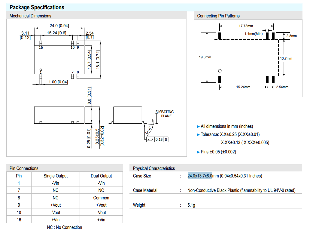| 封装尺寸 | 24.0x13.7x8.0mm | 认证 | RoHS,CE |
