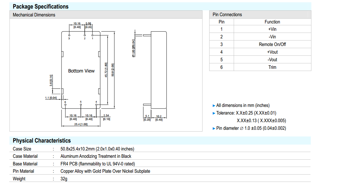| 封装尺寸 | 50.8x25.4x10.2mm | 认证 | RoHS,CE |