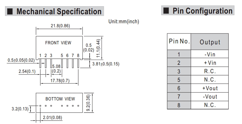 | 输出功率 | 2W | 短路保护 | CONTINUOUS |