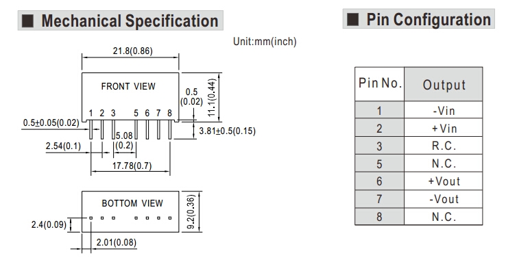 | 输出功率 | 5W | 短路保护 | CONTINUOUS |