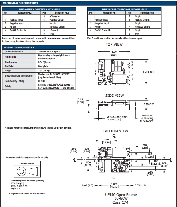 | 封装尺寸 | 48.3x38.1x9.7mm | 认证 | RoHS,CE |