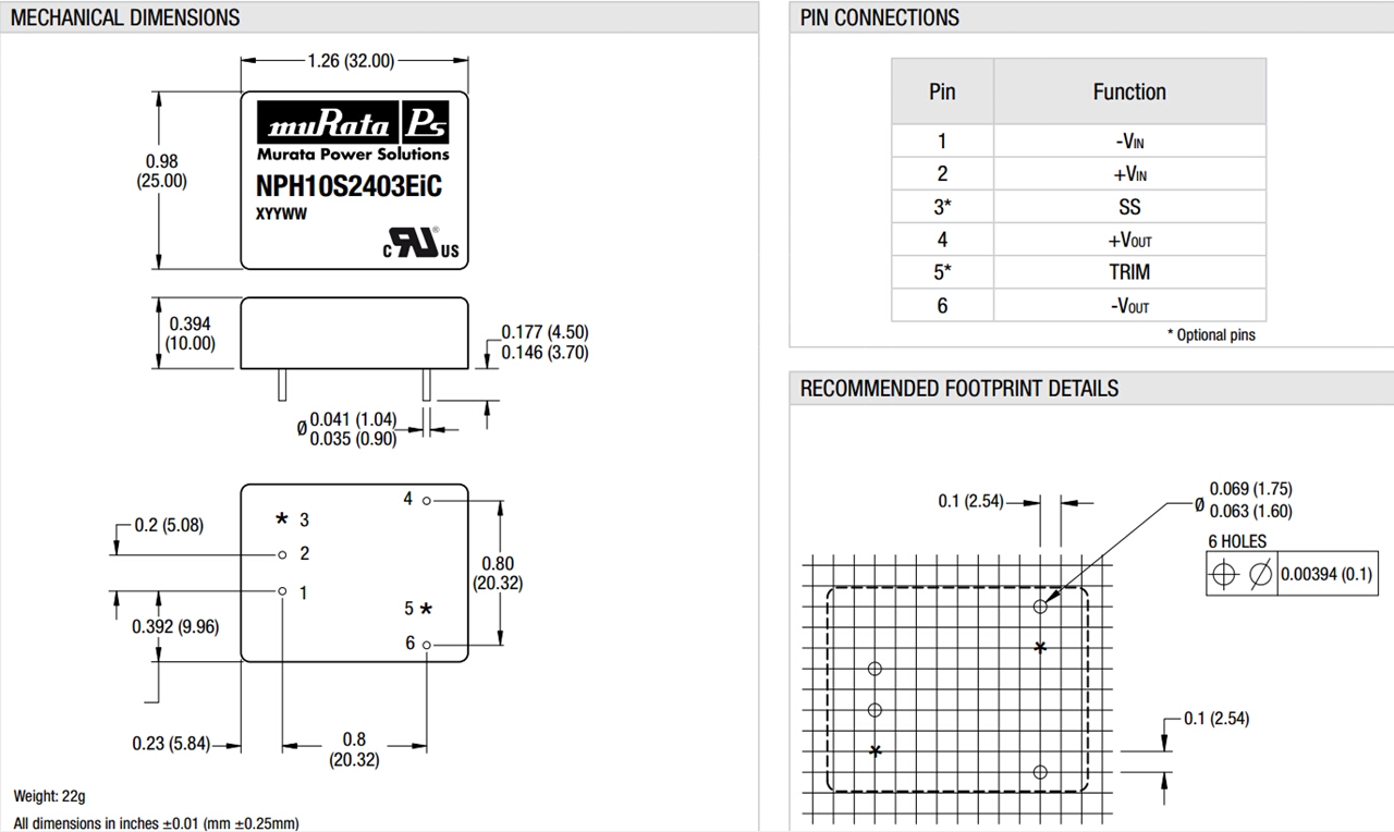 查看制造商MURATA的系列NPH10S更多型号电源